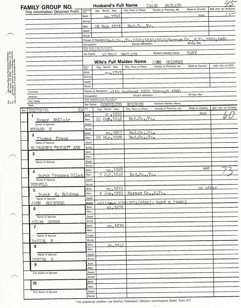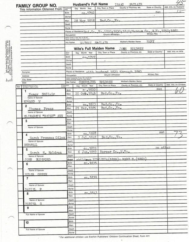 Place of Residence: Bedford County VA: 1820, 1830, 1840: Mercan County W.VA 1850, 1866