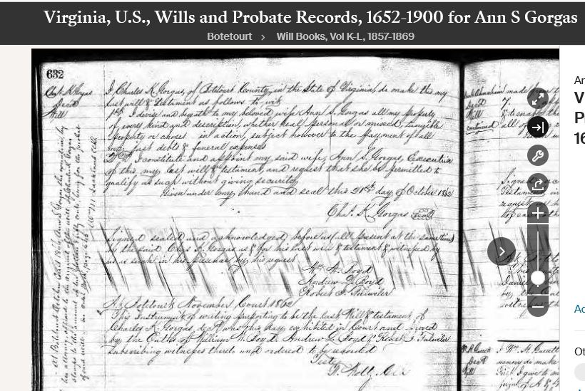 "I, Charles K. Gorgas, of Botetourt County in the State of Virginia, do make this my last will and testament as follows to wit
