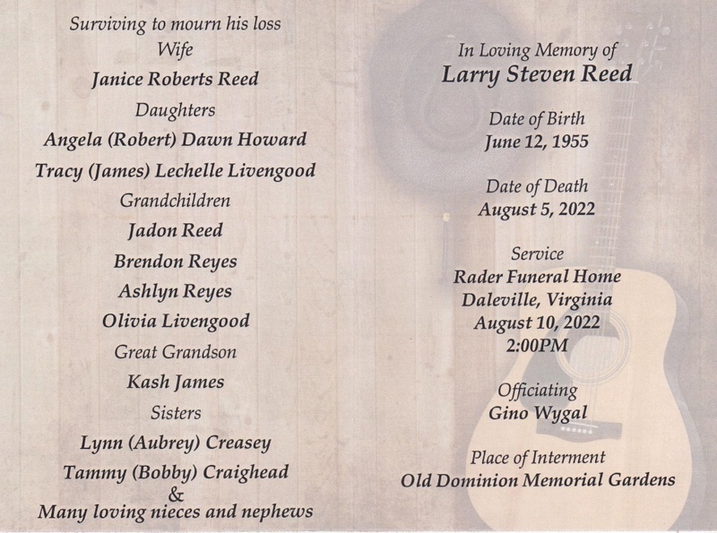 - Images 1-2 - Memorial Card from Larry Reed's funeral