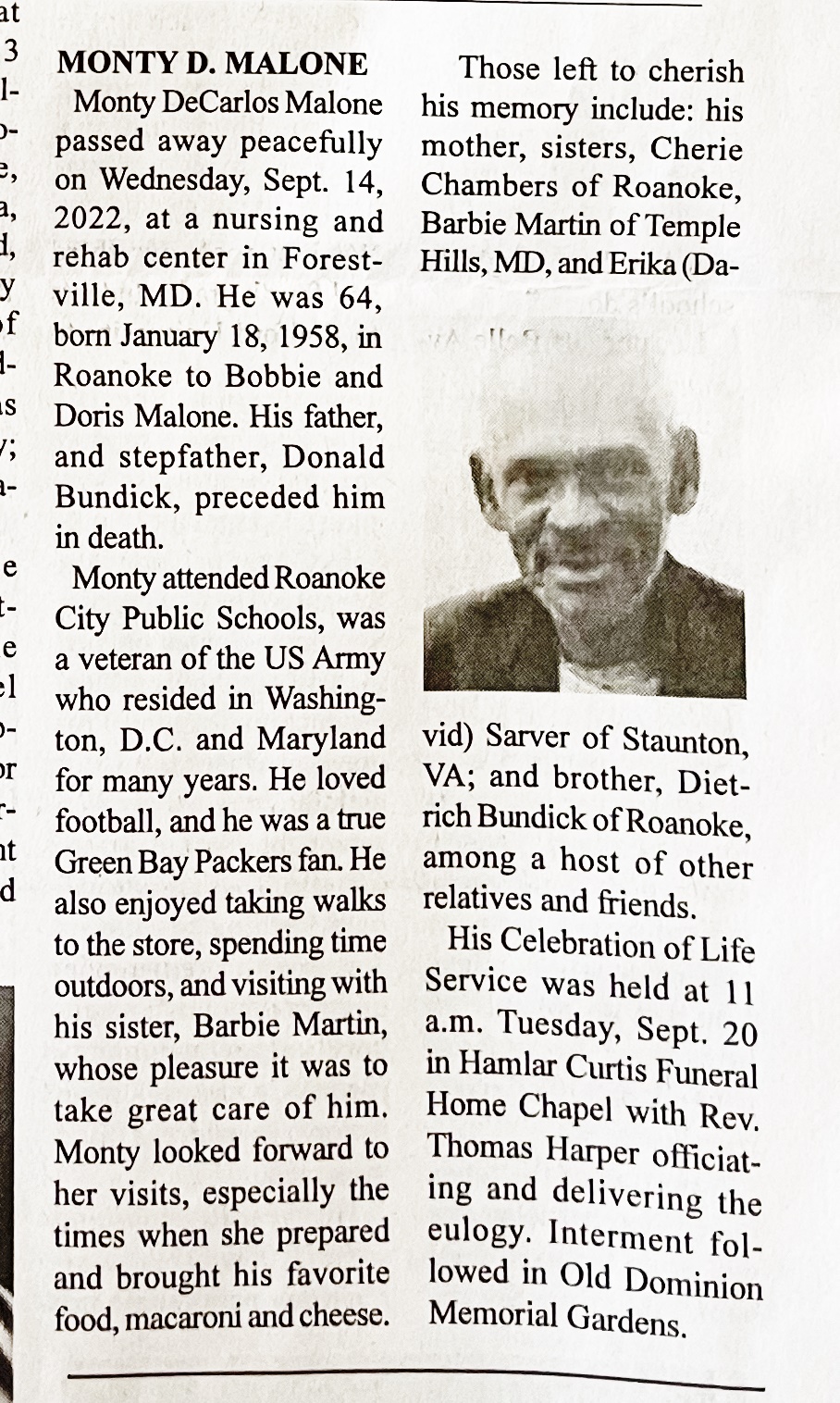 Malone, Monty DeCarlos, 1958 - 2022