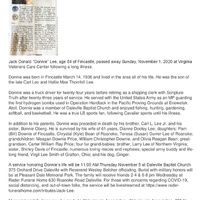 - Jack "Donnie" Lee was born in 1936 in Fincastle to Carl Leo and Hallie Mae Thornhill Lee. He married Dianne Dooley Lee. They had three daughters: Pam Downie, Chrystal Bean, and Teresa Durrer-Lee. Jack Lee died on November 1, 2020, and is buried in Pleasant Dale Memorial Park.