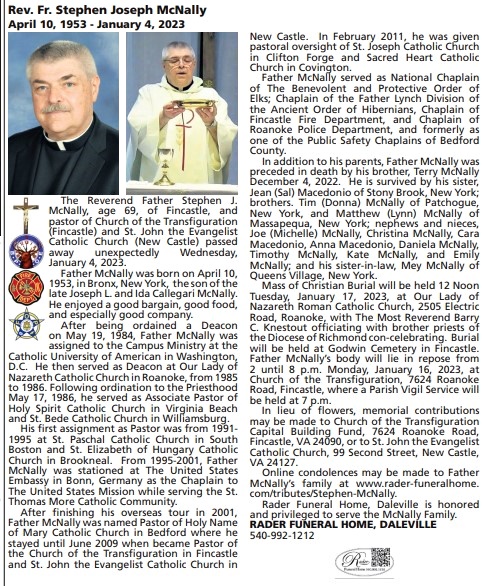 Rev. Fr. McNally, Stephen Joseph, 1953 - 2023