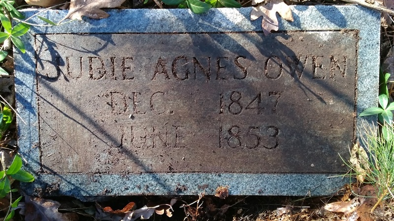 - Judie Agnes Owen was born in 1847. She died in 1853 and is buried in Owen Cemetery.