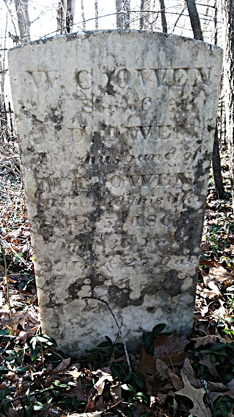 - William Christopher Owen was born December 9, 1830 to James D. Owen and Mary Margaret Waskey Owen. He married Margaret Magdaline Rhodes Owen. He died September 5, 1867 and was buried at the Owen Family Cemetery.