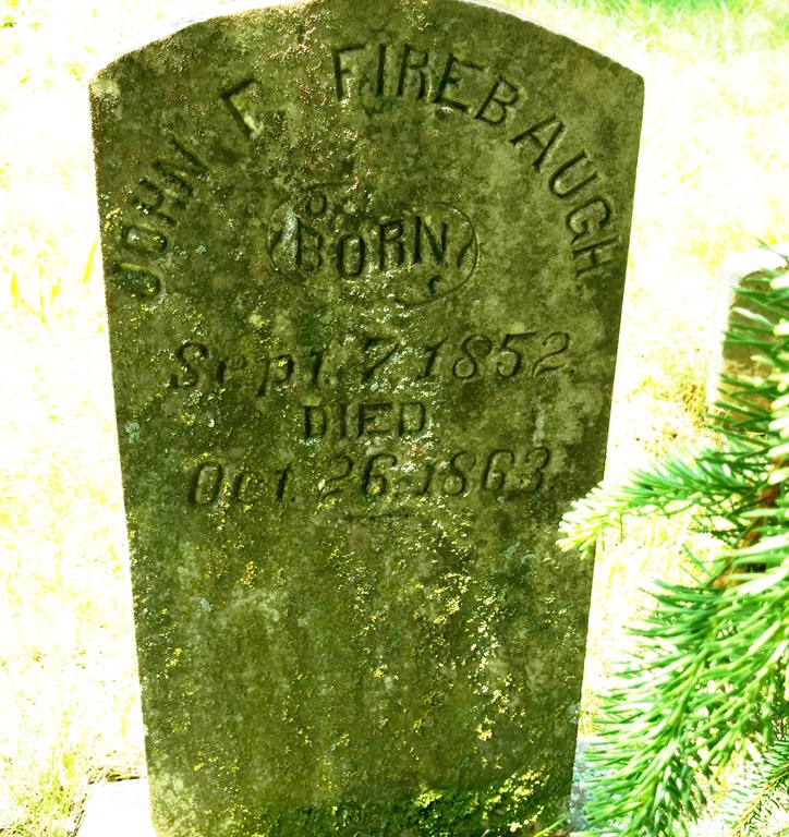 - John Fulton Firebaugh was born September 7, 1852 to William Miller Firebaugh. He died October 26, 1863, aged 11 years, and is buried in Firebaugh Cemetery.