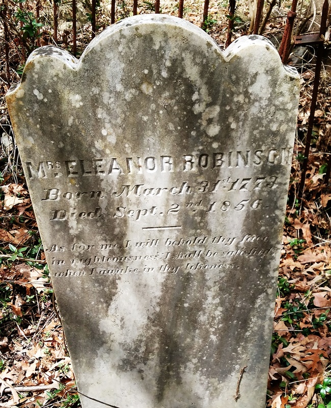 - Mrs. Eleanor Robinson was born in 1773. She died in 1856 at the age of 83 years, 5 months, and 2 days, and is buried in Allen Cemetery.