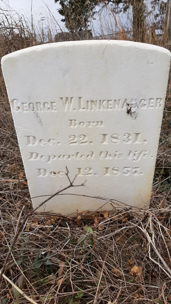 - George W. Linkenauger was born in 1831. He died in 1857 at the age of 25 years, 11 months, and 20 days, and is buried in Britt-Linkenauger Cemetery.