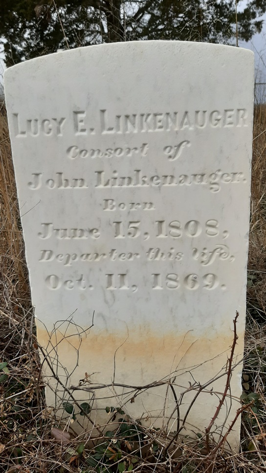 - Lucy E. Linkenauger was born June 15, 1808, and died October 11, 1869. She was married to John Linkenauger. She is buried in the Old Linkenauger Cemetery, more recently known as Britt's Cemetery.