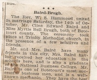 Myrtle Bell Brugh & Cline Edward Baird A newspaper clipping, undated, which reads,