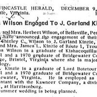 Mr. and Mrs. Herbert Wilson, of Belleville, Pennsylvania, have announced the engagement of their daughter Shirley C. Wilson to J. Garland Kinzie, son of Mr. and Mrs. James L. Kinzie of Route 1, Troutville.