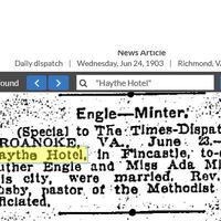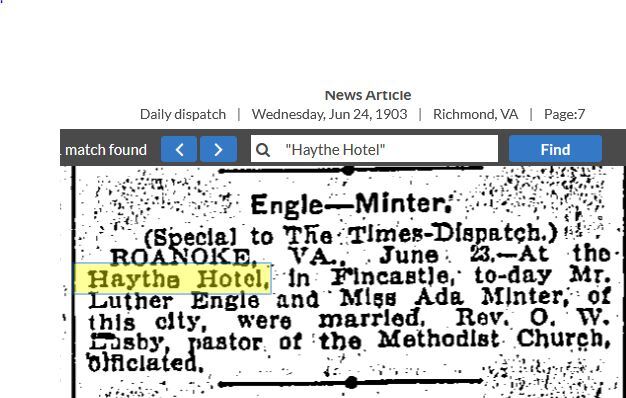 - Image 7 - a newspaper article from the Daily Dispatch, dated June 24, 1903, reporting on a wedding held at the Haythe Hotel.
