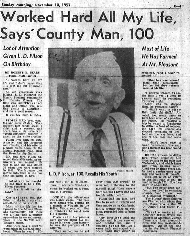 An old gentleman was talking-L. D. Filson of the Mount Pleasant community in Roanoke County. The time was last Thursday night and Filson was getting plenty of attention-and for a good reason: